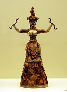256px-Snake_Goddess_-_Heraklion_Achaeological_Museum_retouched Minoisk stauett av en prestinne. Foto: Wikimedia Commons