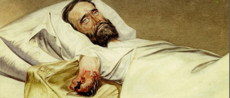 Ill:"Wallen wounded by Minie ball" by Edward Stauch Licensed under Public domain via Wikimedia Commons -