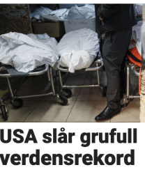 Man framhever kuriøse og skremmende enkeltskjebner, som at fire døde i samme amerikanske familie. Lar en lege nærmest uimotsagt får bruke krigs- og pestmetaforer og opphausa dødstall i «Debatten.» Bruker Camilla Stoltenbergs selvsagte uttalelse «Vi må regne med dødsfall» til å lage sjokkoverskrifter. Til og med en artikkel som avdramatiserer overdrevne dødsestimater, presenteres under den dramatiske overskriften «Så dødelig er det».